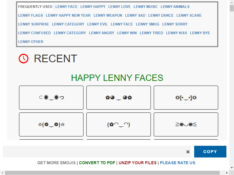 Click on the extension icon, choose any lenny and auto copy